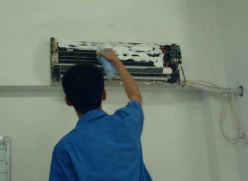 | 许昌市空调维修师傅给许昌市用户上门维修清洗空调。 |